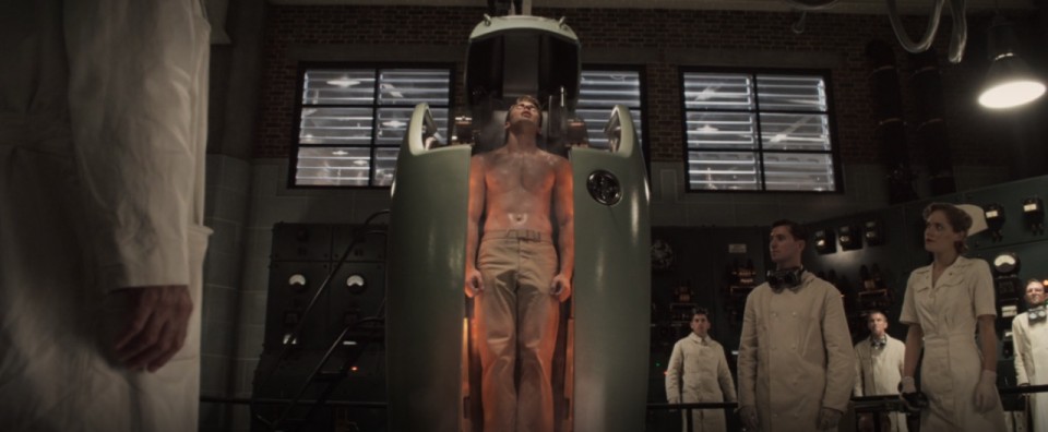 그렇게 수퍼 솔저 혈청을 투입받은 스티브는 엄청나게 강하고 멋진 몸을 가지게 됩니다.
